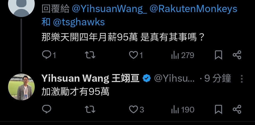 → Hocity: 會留在母隊,就算樂天那90萬是激勵獎金灌的,那原本月薪 12/12 11:24
