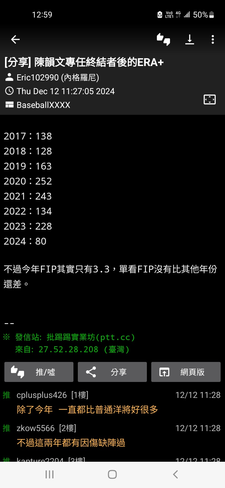 → lionsDuDu: 要擔心這個 統一純血有功老將球員生涯都馬很長壽 12/12 11:18