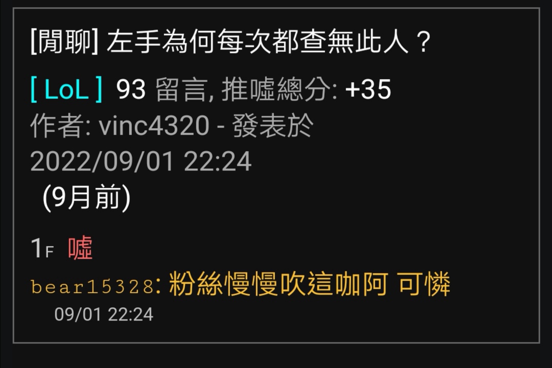 噓 a9854021 : Chovy這個被牙膏屌打的0冠中路連叫右手都不配了 就 06/23 21:23