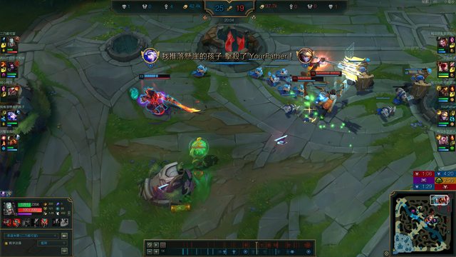 再來這邊你看小地圖可以看到你們中路要回家補裝備,你就算推了隊友也不能利用
