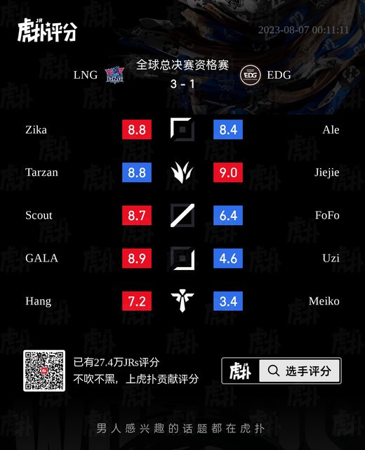 標題[閒聊] LNG vs EDG 虎撲賽後評分表