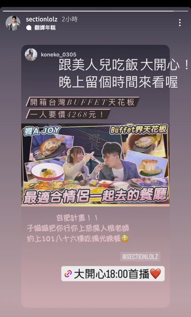 patrick123 : 參加節目還送女友 節目有夠頂 08/08 14:56