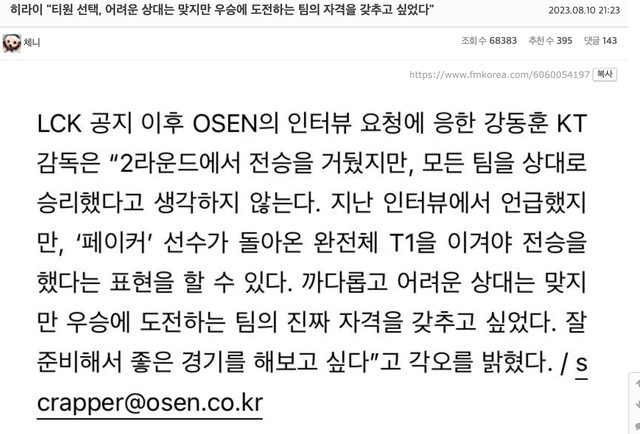 → cha122977 : 韓國預測的甚至連kt 3:2贏都沒人猜 扯耶 08/10 22:53