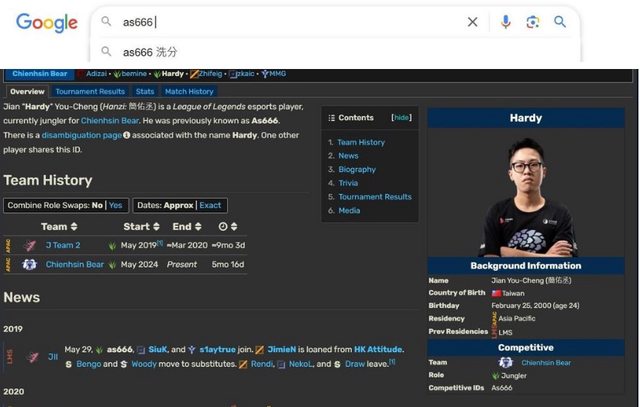: 第二個 比其寶居民 知名洗分王 as666 曾經被魚丸做在洗分名單的人