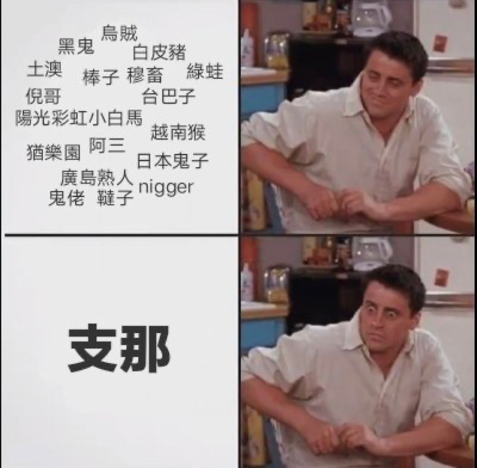 推 neone : 有些人自己不懂外國歧視梗 就覺得歧視沒有發生.. 07/05 19:39