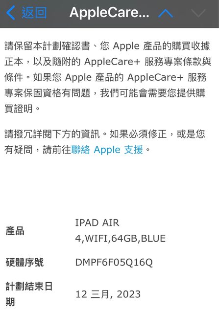 可憑商品序號至 Apple官網查詢 https://apple.co/3l6By0R