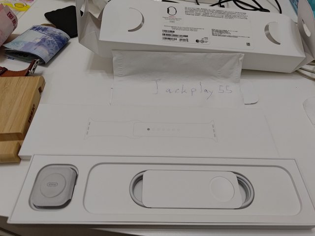 原廠盒裝、錶本體、全新米白色運動錶帶、全新充電線及副廠錶帶一條