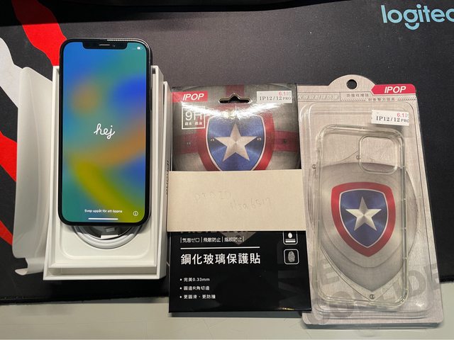 正面有玻璃保護貼 背面有藍色金屬鏡頭貼