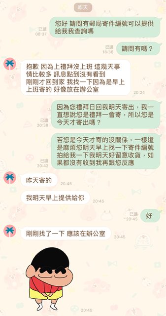 → kkes60411 : 有寄出,但若真的郵差後續有送貨來我也有交代管理 07/12 22:40