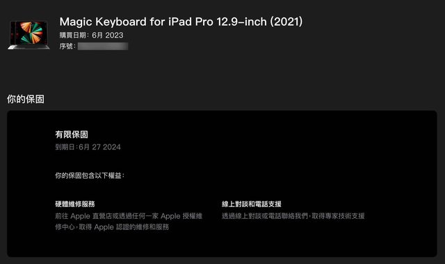 AppleCare+ 做更換,領取時 Apple Store 會回收包裝,所以盒子與鍵盤序號不同