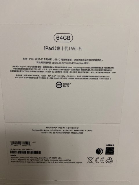 標題[販售] 台北忠孝新生 iPad 10th WIFI 64G 銀色