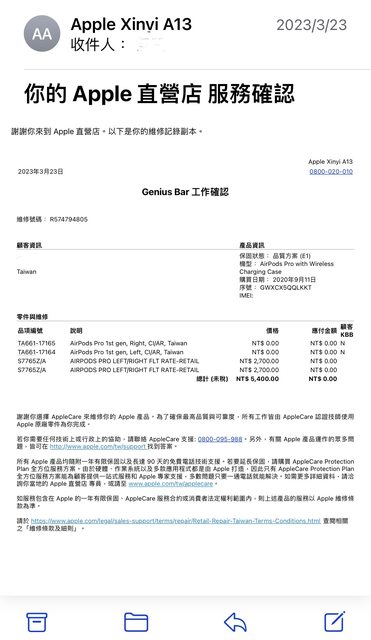 2020/9購入,2023/3月底依召回計劃左右耳換新,