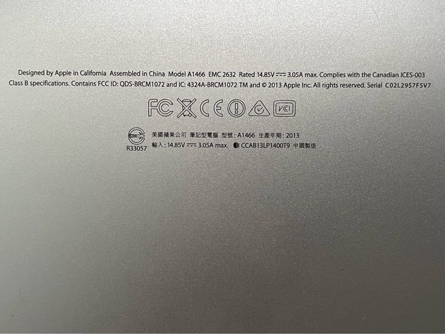 [規格] MacBook Air (13-inch, Mid 2013)