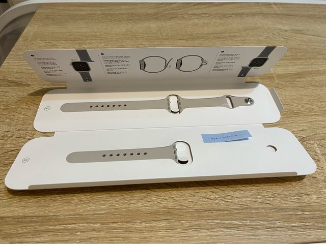 無使用過;另一條是粉色編織錶帶,附充電線。