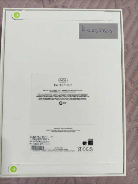標題[販售] 中壢 全新 iPAD 10th wifi 64GB 銀色