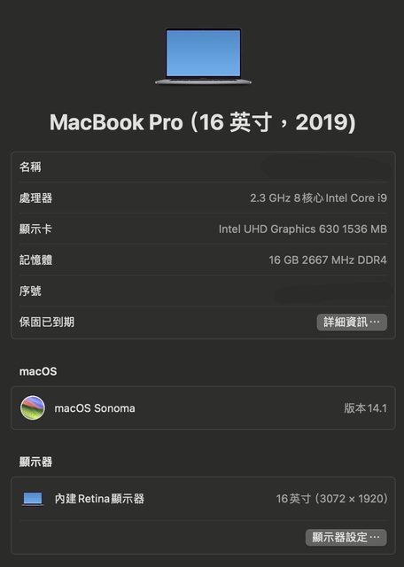 標題[販售] 台北 Macbook Pro 2019 16吋 16G/1TB