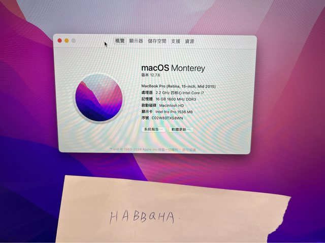 A1398 , MacBook Pro retina(15-inch,mid 2015, 銀色,閒置不常使用
