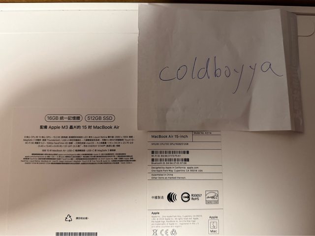 標題[販售] MacBook Air M3 15吋 16/512g 全新未拆