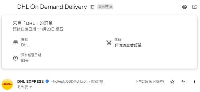 結果今天就通知說預計明天會送達