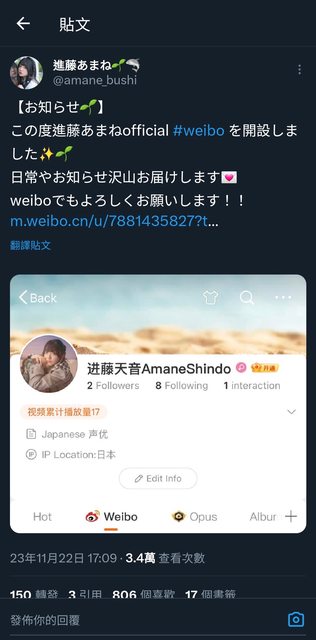 標題[BGD ] この度進藤あまねofficial #weibo を開