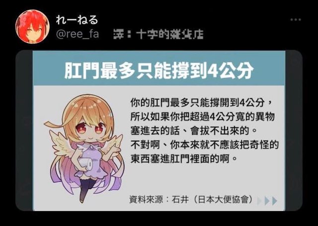 → SydLrio: 括約肌不是讓你任意打開的 11/23 09:14