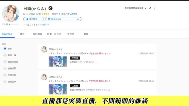 這平台有影片區,會把niconico比較色的1080P的直播檔丟上來