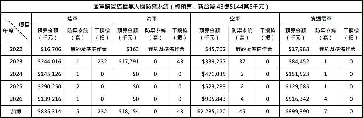 nanozako : 國軍2022開始編列的無人機防禦系統預算和內容 09/04 21:25