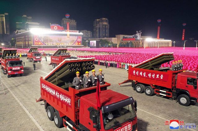 如題啦 最近北韓建國75周年的閱兵當中 工農紅衛兵準軍事部隊展示了一組偽裝成民用卡車的多管火箭車隊 https://i.imgur.com/GFcAOcM.jpg