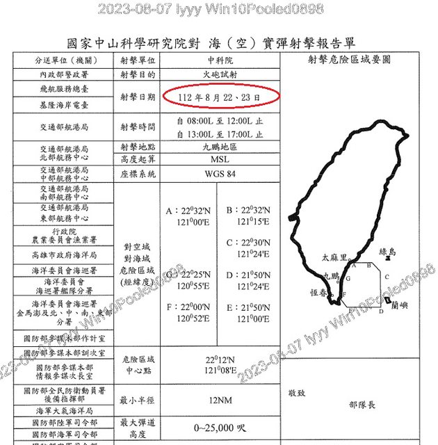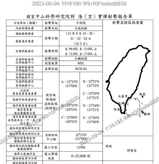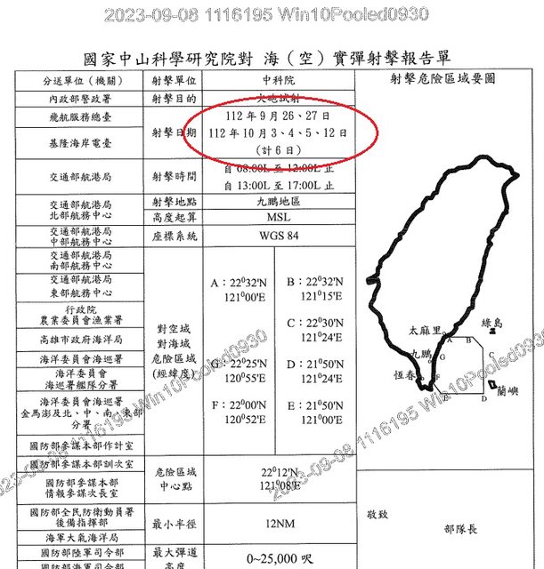 asmp : 媒體報導的那次雄三試射是在8/9由空軍申請的管制區 09/15 21:33