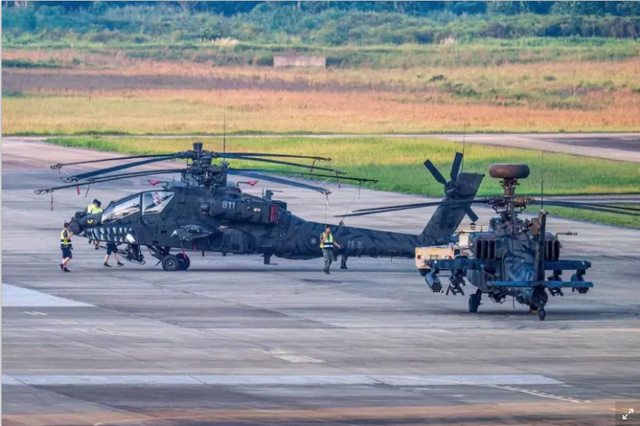 ,將兩架AH-64阿帕契直升機彩繪成「低視度虎斑鯊嘴」,以展示其戰力。這一消息在民