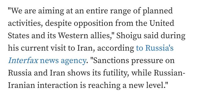 儘管遭到美國及其方盟友的反對, 我們的目標是開展一系列預定計畫中的活動 (美方)對俄羅斯和伊朗的制裁壓力顯示出徒勞無功 而俄羅斯與伊朗的互動正在達到新的水平 -- https://i.imgur.com/WQeSBhI.jpg