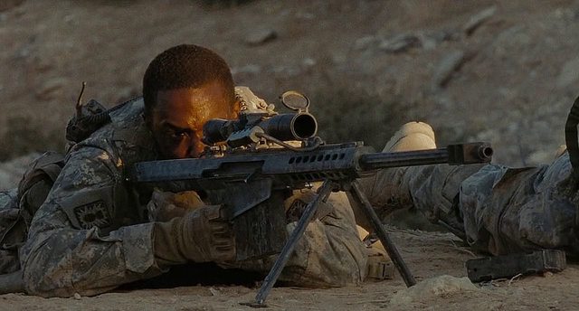 對方大聲吼著他的M82A1步槍卡住了、無法射擊,Cook問清槍枝的狀況,