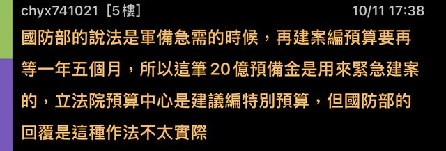 → lovez04wj06 : 但是說要拿來買急案是有什麼急案會要急到拿預備金 10/12 17:02