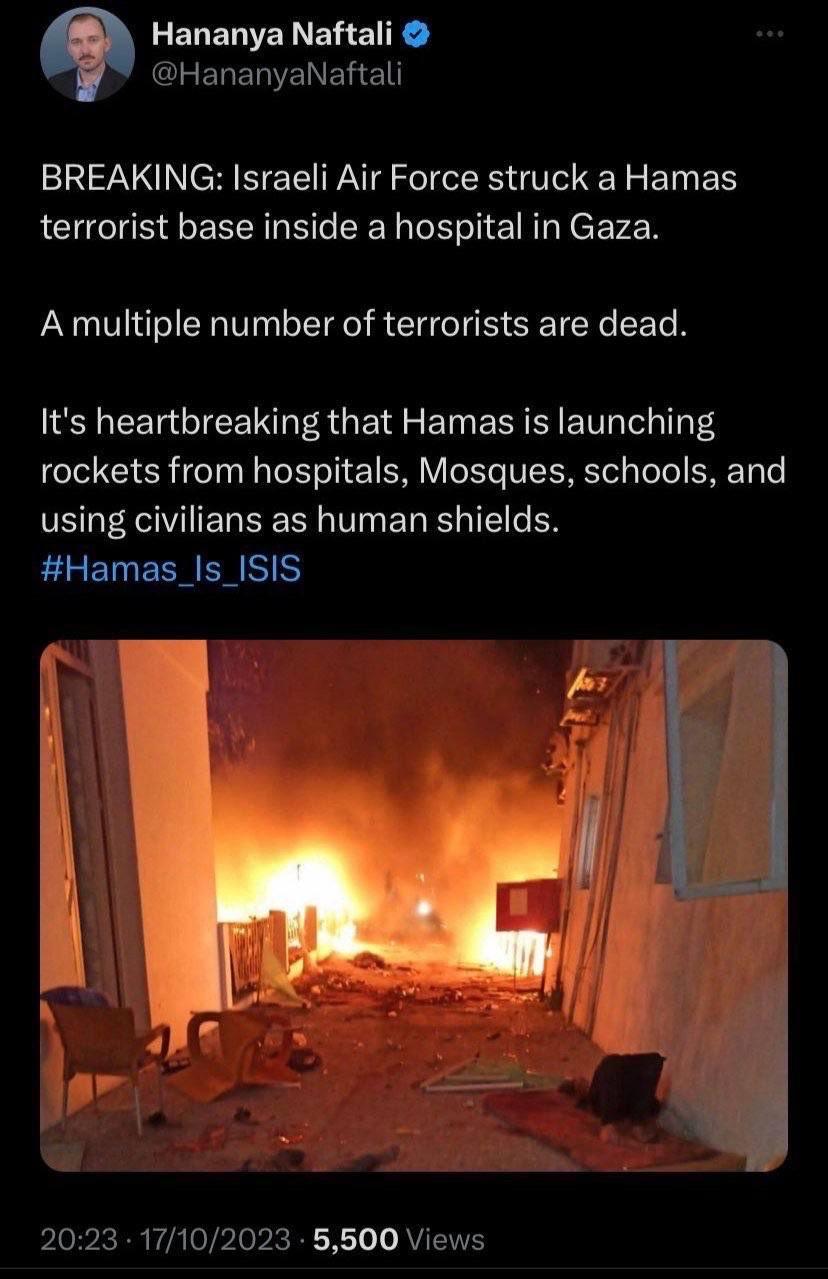 → Blazeleo819 : 炸醫院對以色列來說是有什麼好處? 10/18 09:10