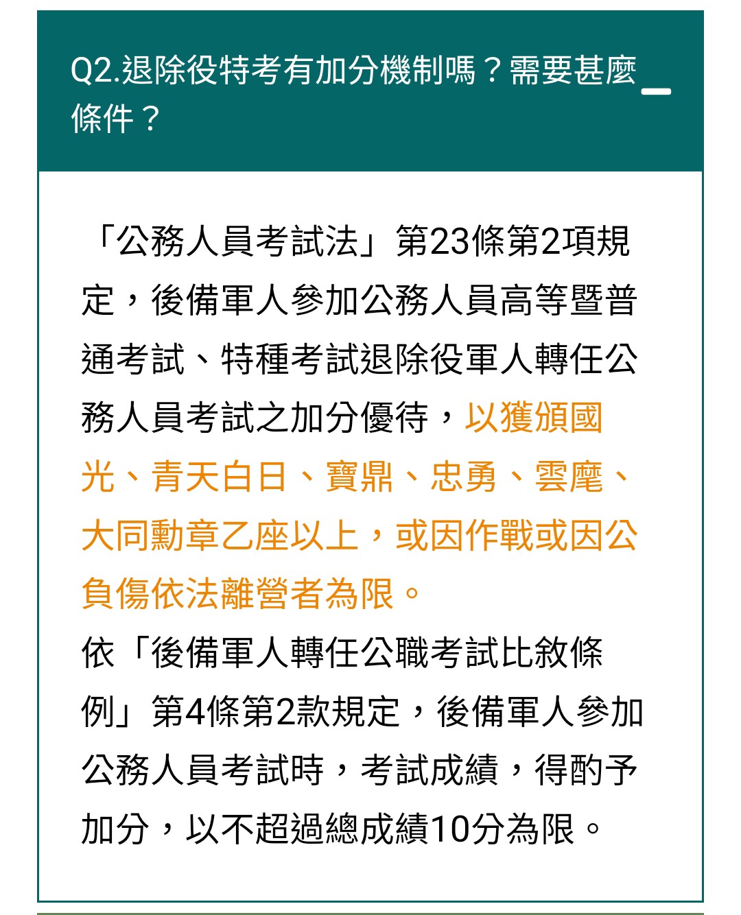 推 jobli : 第 四 條 前條後備軍人參加公務人員考試時,得予 10/19 16:39