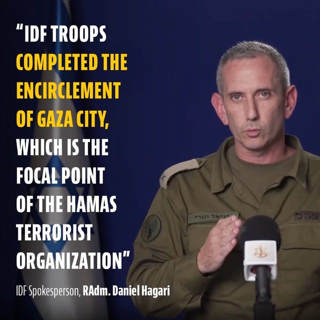 IDF發言人確認陸軍已完成對加薩市的包圍。