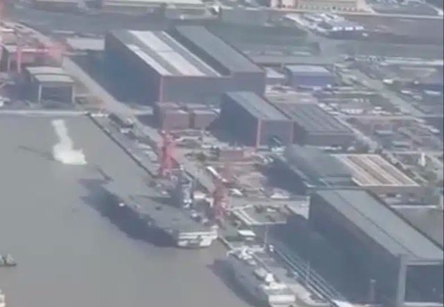 如題啦 昨天中國的CV-18福建號航空母艦 在江南造船廠旁邊的港口進行了電磁彈射的試彈作業 https://i.imgur.com/zFXNMPg.jpg