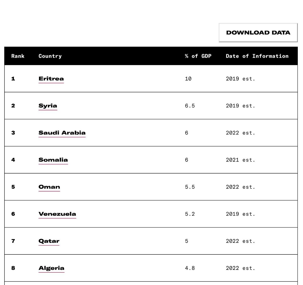 推 ctw01 : 等等如果第六多是指gdp佔比 那第一是不是北韓 12/08 12:20