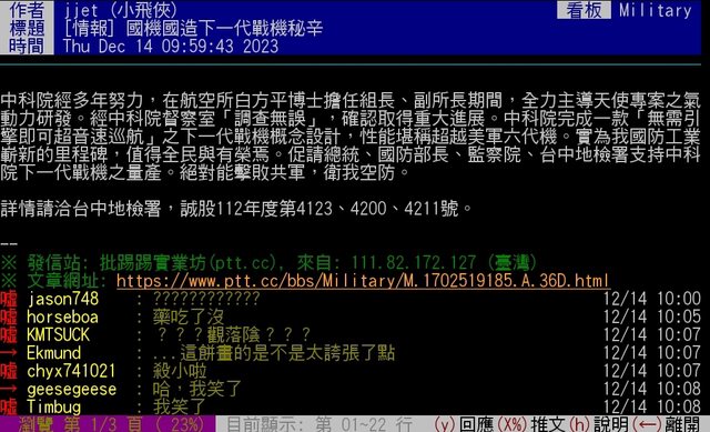 ※ 文章網址: https://www.ptt.org.tw/Military/M.1702529593.A.D03