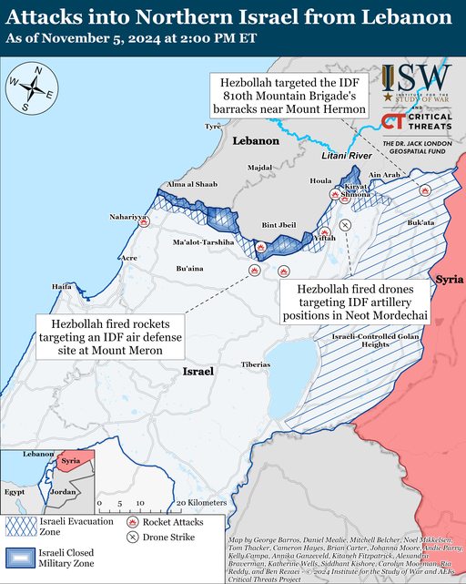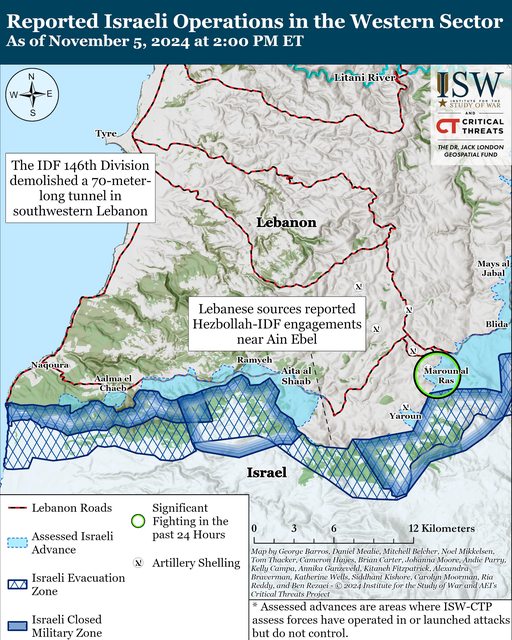 黎巴嫩消息人士稱,自 11 月 4 日 CTP-ISW