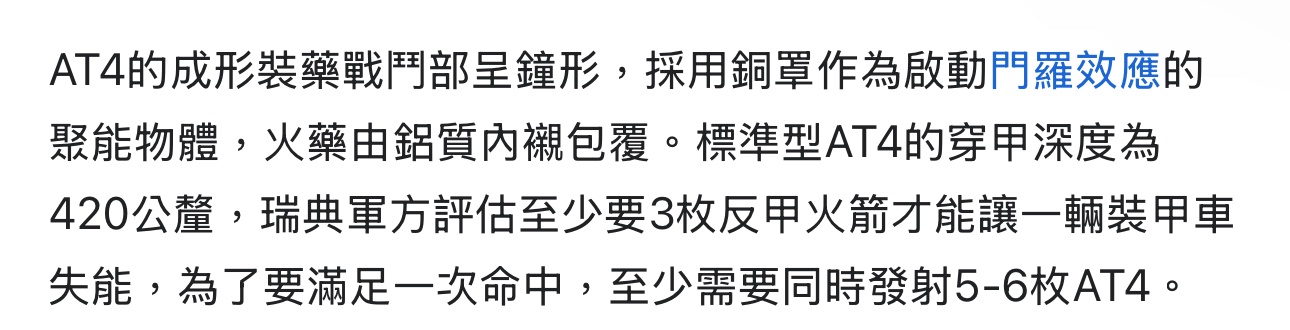推 peterlee97 : AT4不行? 看維基有寫1994時有測試擊破“裝設反應 11/08 12:01