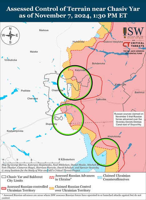 11 月 7 日,俄軍繼續在 Chasiv Yar 及其周邊