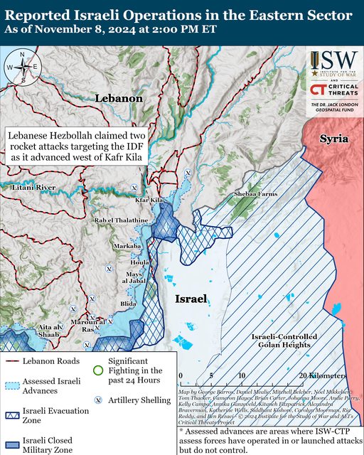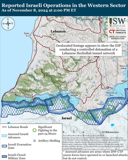 自 11 月 7 日 CTP-ISW報告以來,以色列國防軍繼續在 Maroun al Ras 進行清理行動。
