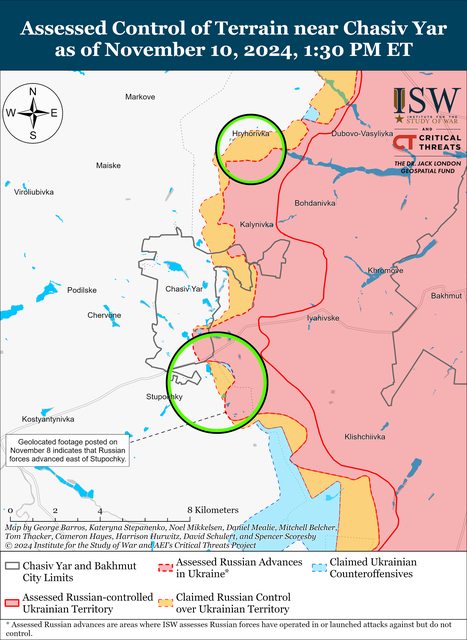 11 月 10 日,俄軍繼續在 Chasiv Yar 方向發動