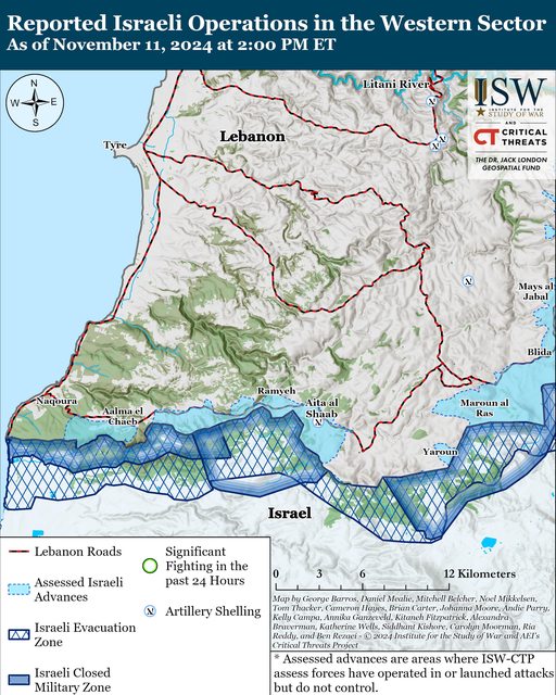 自 11 月 10 日 CTP-ISW 報告以來,真主黨已對以色列發動了至少 23 次無人機、迫擊砲和