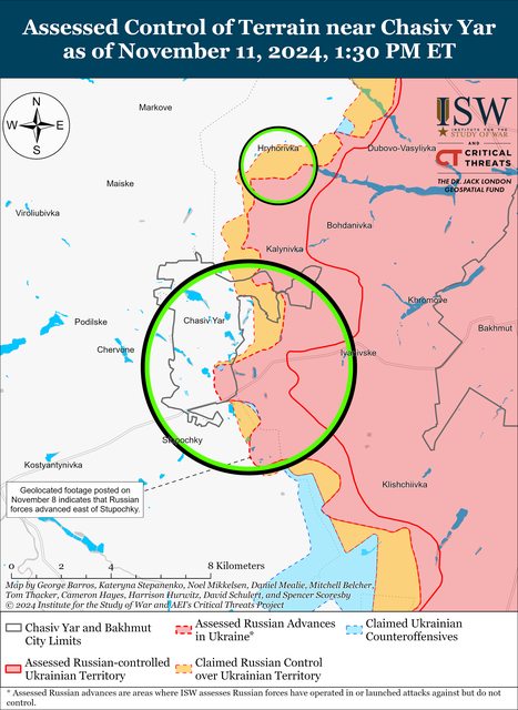 11 月 11 日,俄軍繼續在 Chasiv Yar 方向進攻