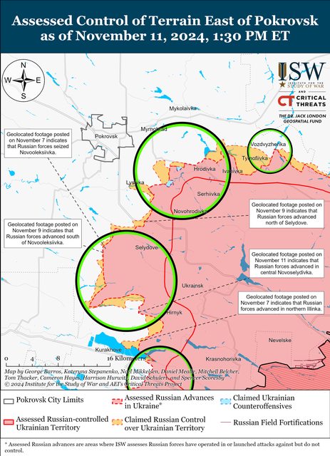 11月11日,俄軍繼續向波克羅夫斯克方向