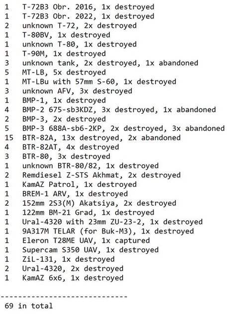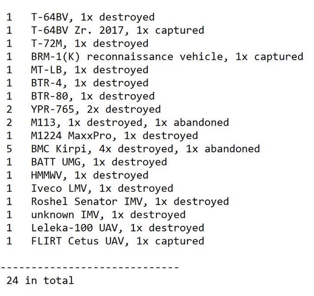 16 輛裝甲車中至少有 10 輛被摧毀,確切的數字將在各單位發布所有結果後得知。