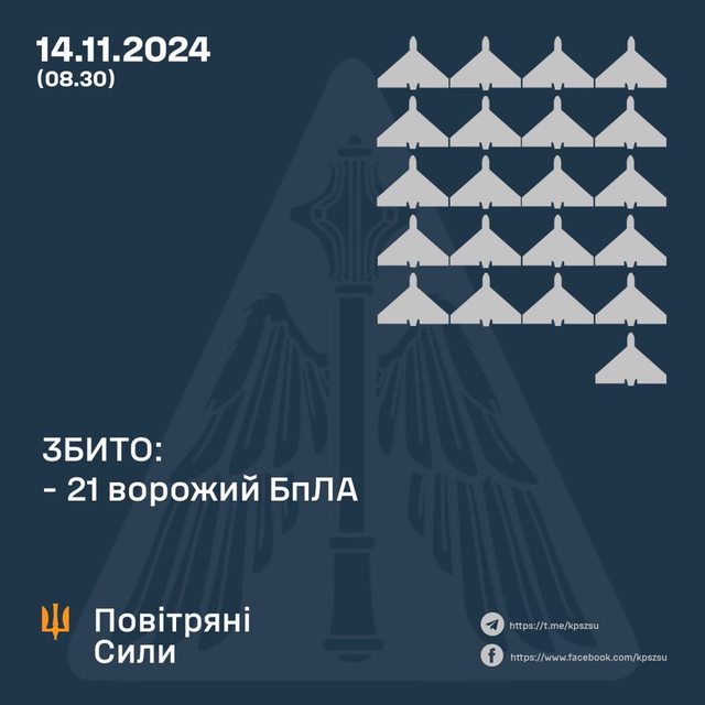 烏克蘭軍方擊落了 59 架俄羅斯無人機中的 21 架