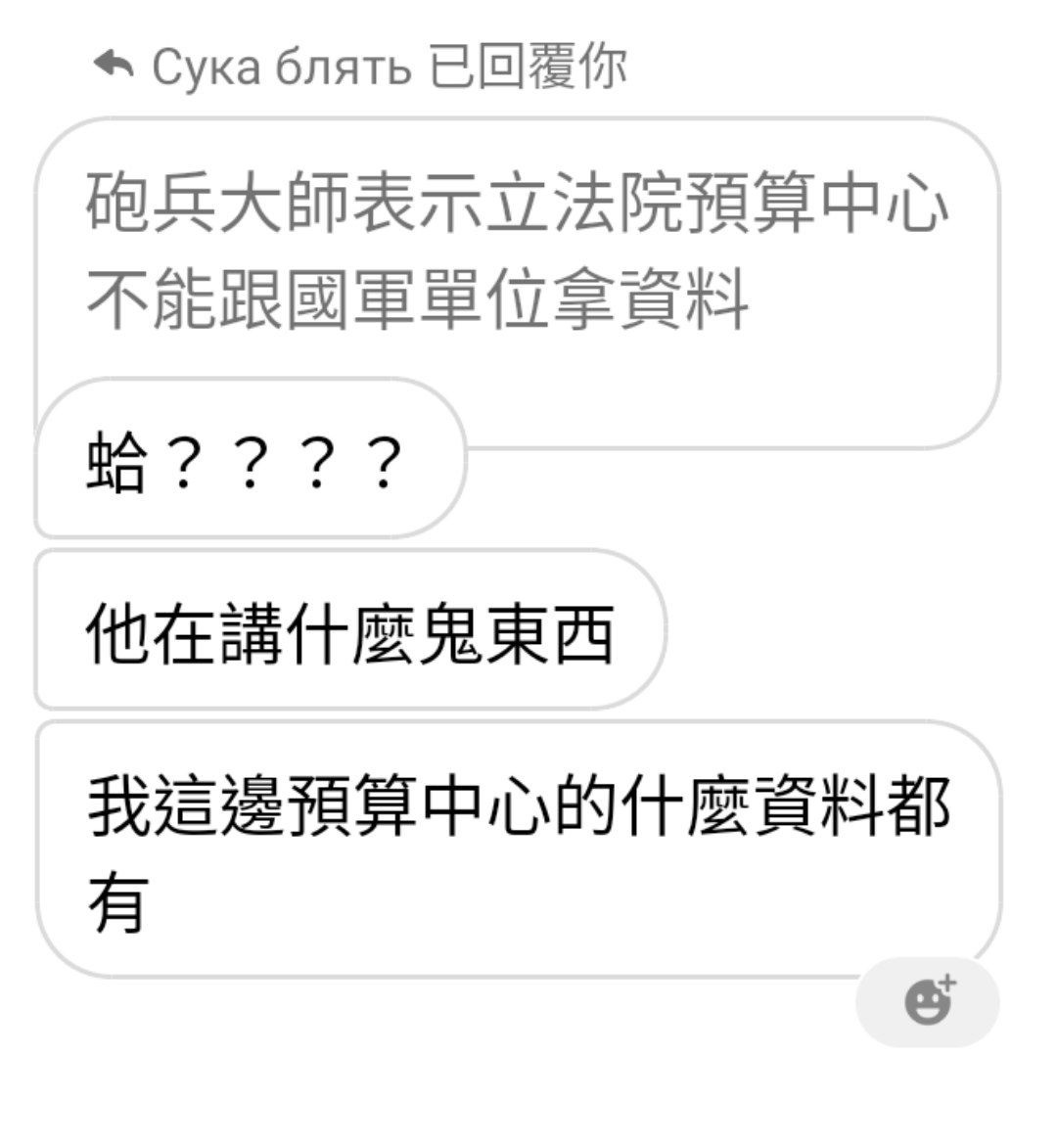 → Gdiaofuta : 預算中心是直接繞過國防部跟部隊基層拿資料的,比 11/18 09:39